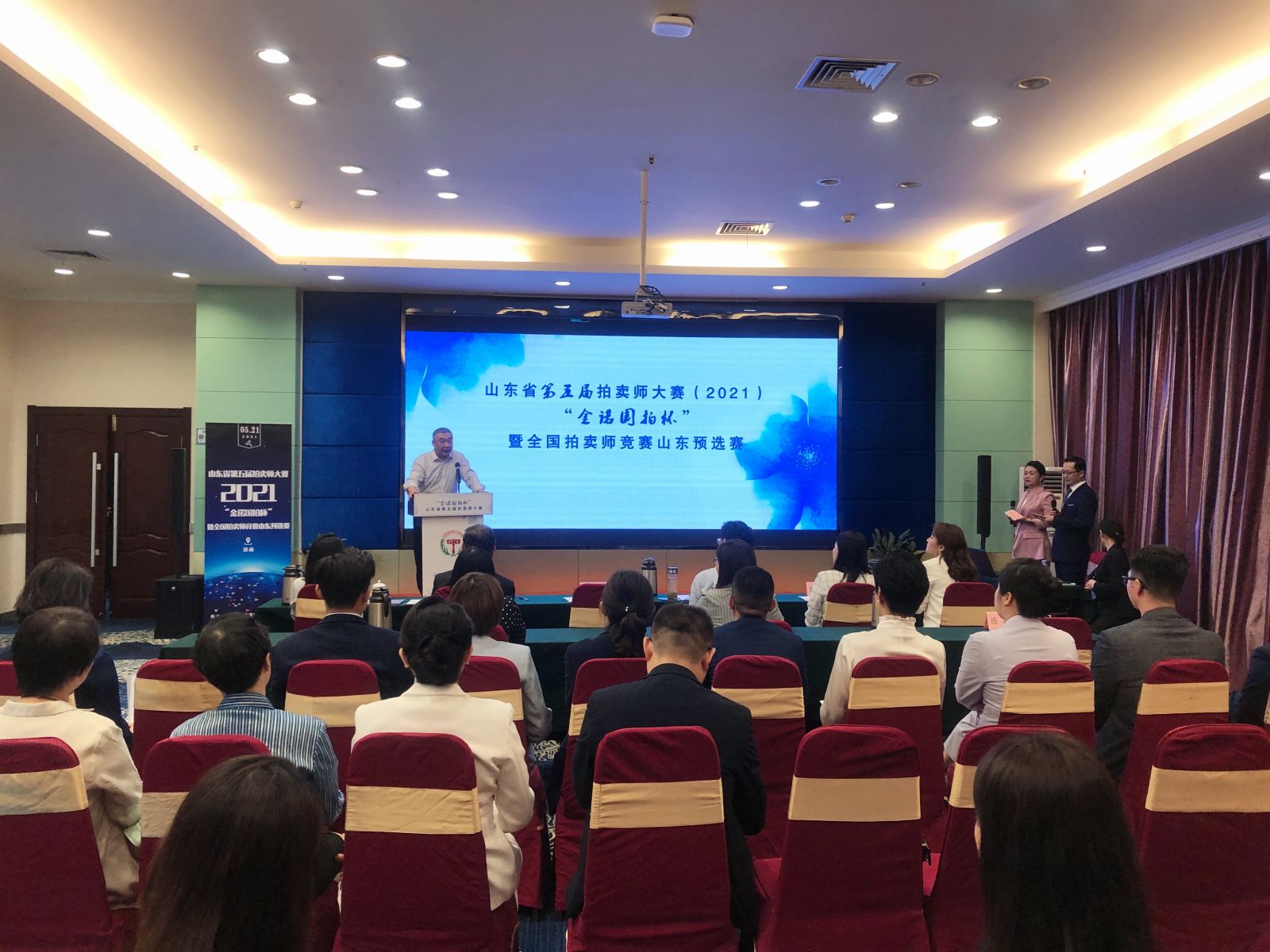 2021年5月21日,山東省第五屆拍賣師大賽“金諾國拍杯”暨全國拍賣師競賽山東預選賽在濟南舉辦,本次大賽吸引了來自全省各地20名國家注冊拍賣師報名參賽,中拍協副會長、山東省拍協會長李偉出席活動并講話,省拍協副會長宋承果,金諾國拍集團董事長、省拍協監事商雪梅出席活動。